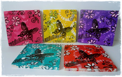 Just popped in as a quick reminder that these's 3 more days left to enter the DT call plus would like to show you a few coaster that i have made using Dylusion Paints, stencils and a few stamps that i found in my stash. Hope you like