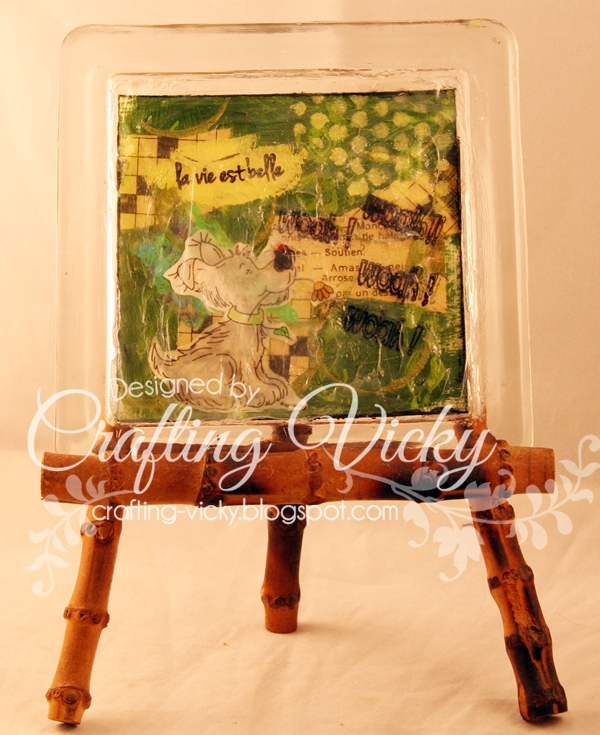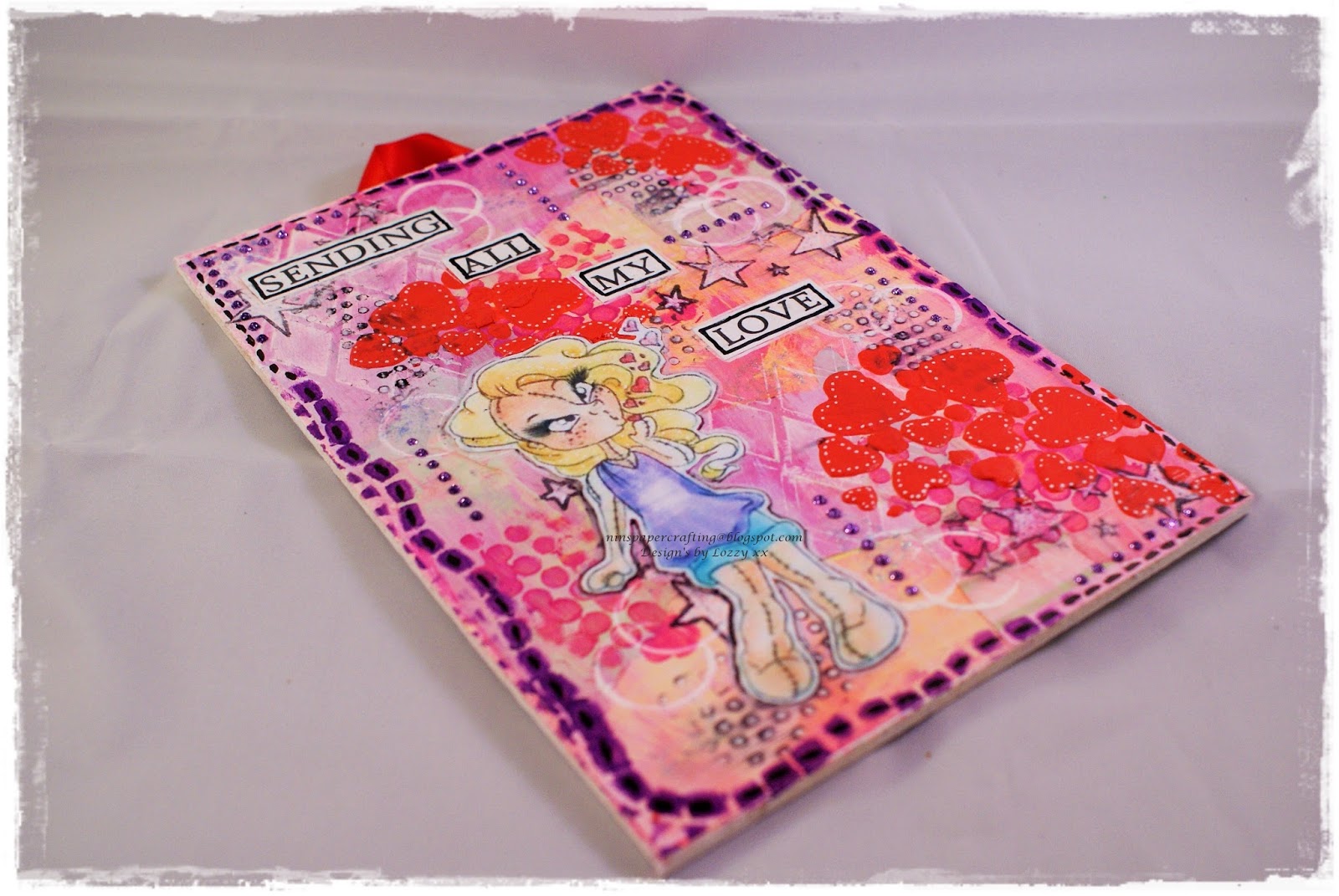 Would like to show you one of my MDF 6 x 8 boards that iv decorated to make a wall hanger. Have used Dylusion paints and all the stamps are from PaperArtsy. The image i used is from Vera Lane Studio's called Best Friends.